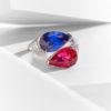 Bague Toi & Moi Avani en or blanc, serti d’un saphir bleu intense et d’un spinelle rouge accompagnés de diamants baguette.